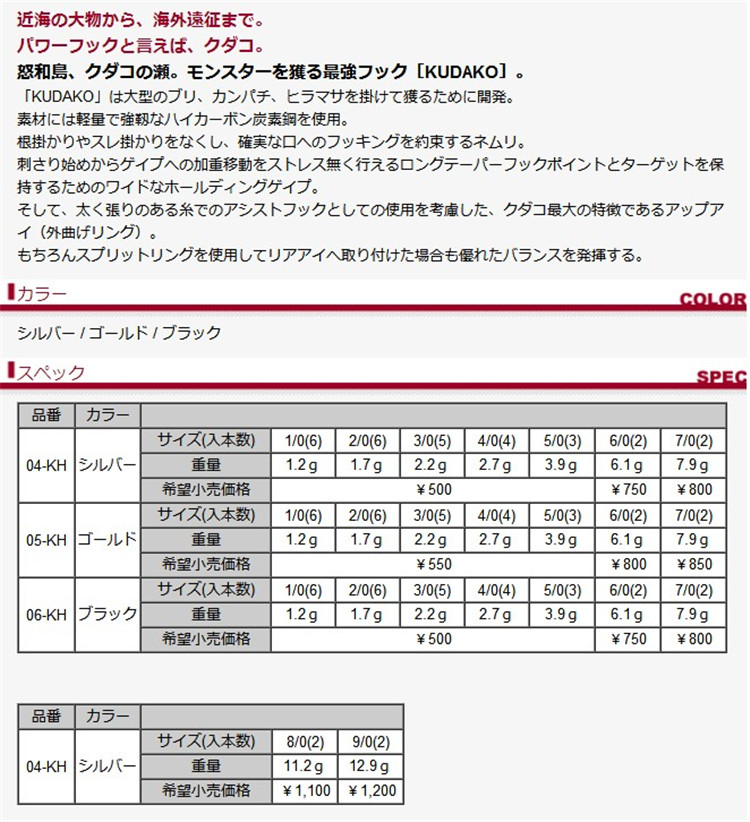Shout Kudako Japan imported fish hooks with barbs originally fitted with iron plate hooked sea fishing crook hook Big Things
