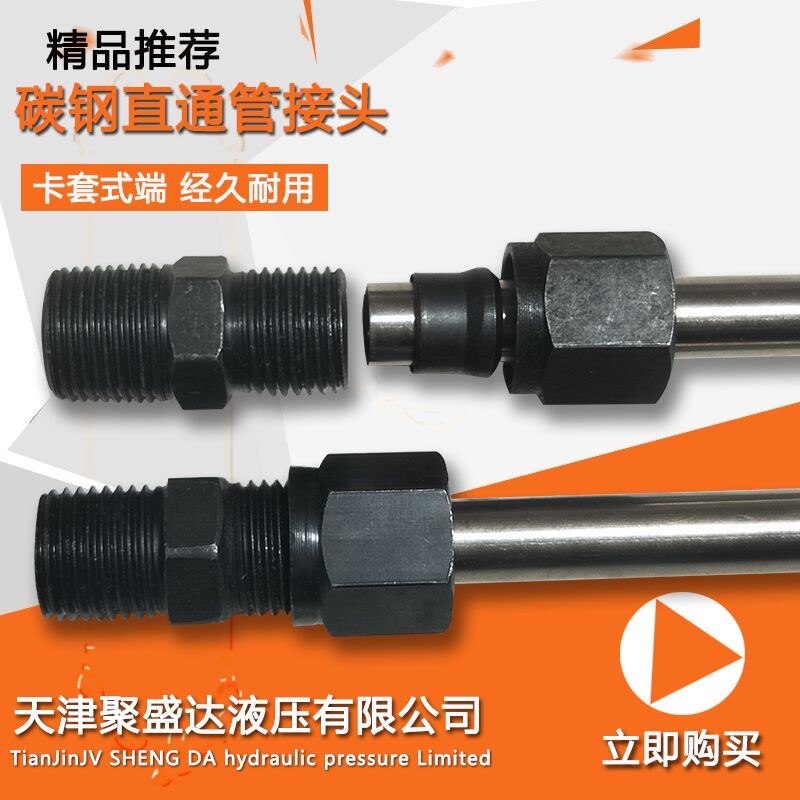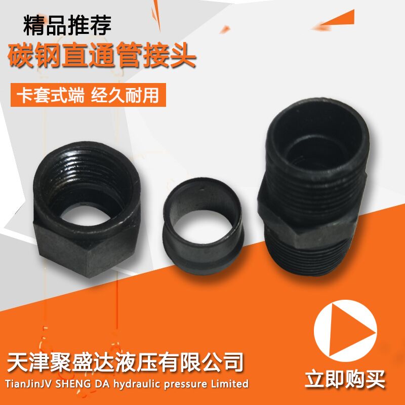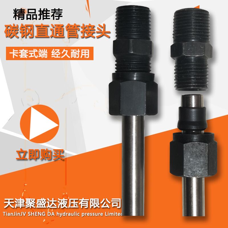 Card sleeve end straight-through pipe joint Carbon steel straight-through hydraulic pipe joint Pipe thread straight-through joint Seamless pipe joint
