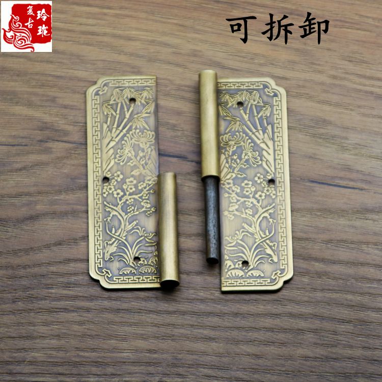 Pure Copper Hinge Top Case Cabinet Imitation Ancient Hinge Melambiju Bamboo Flower Pattern Folding Page Chinese Furniture Wardrobe Whole Closet Cabinet Door Hinge