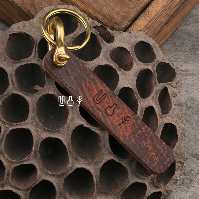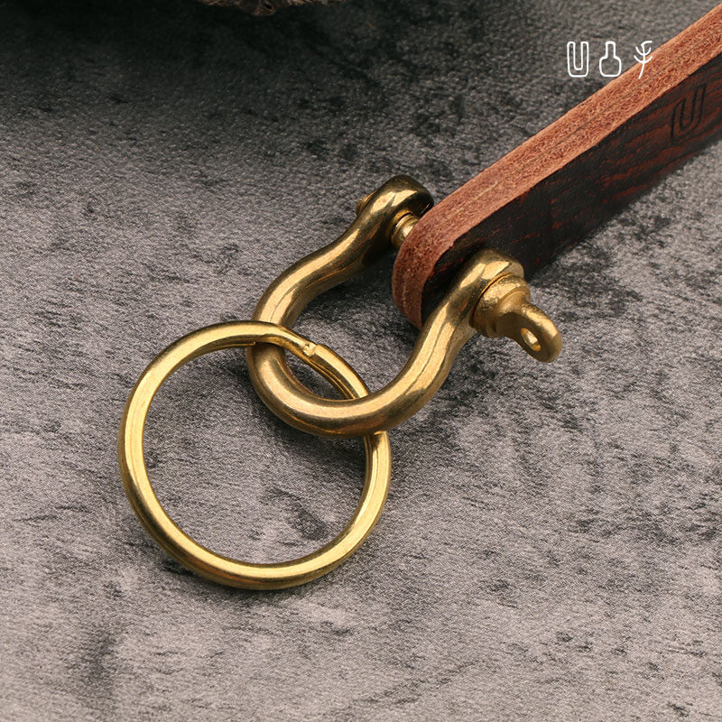 Concave and convex hand leather hand-rubbed color men and women couples simple thickened keychain pure copper accessories custom signature phone