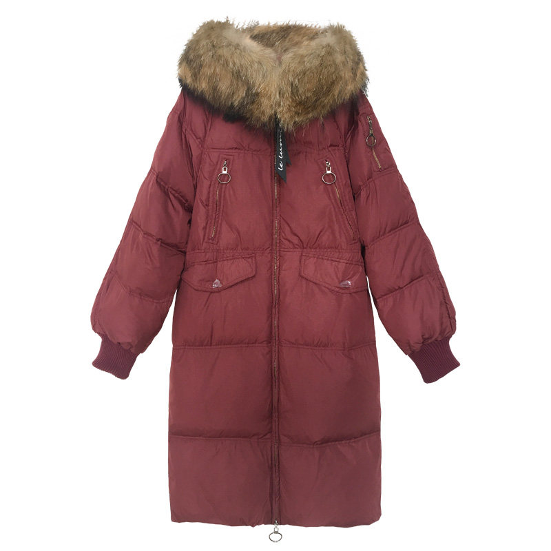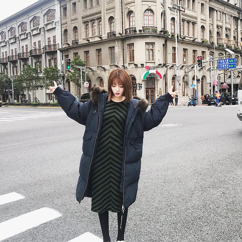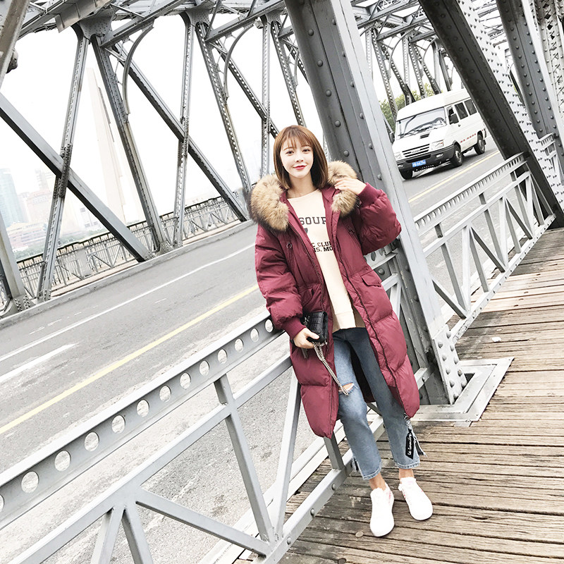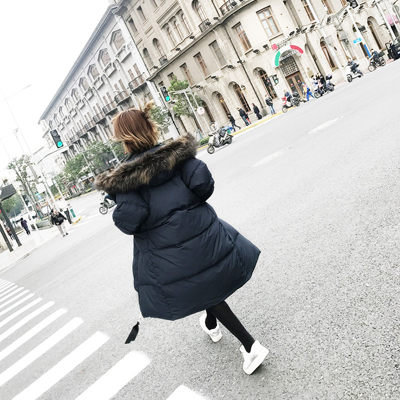 Anti-season clearance down jacket women's long knee-length 2022 winter new solid color thickened ins cotton clothing big hair collar trend