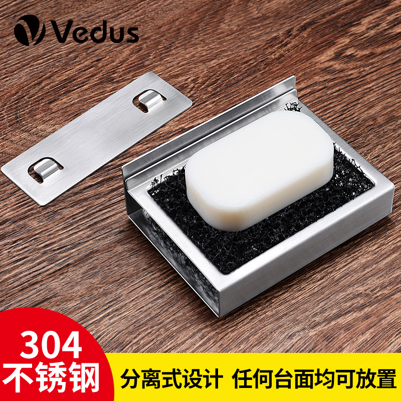 Stainless steel soap box drain soap rack free punch suction cup wall hanging powder room bathroom creative suction wall soap rack