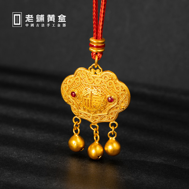 Old Paving Gold Ancient Method Handmade Long Life Lock Foot Gold Pendant Baby Ornaments Gold Necklace Ornaments