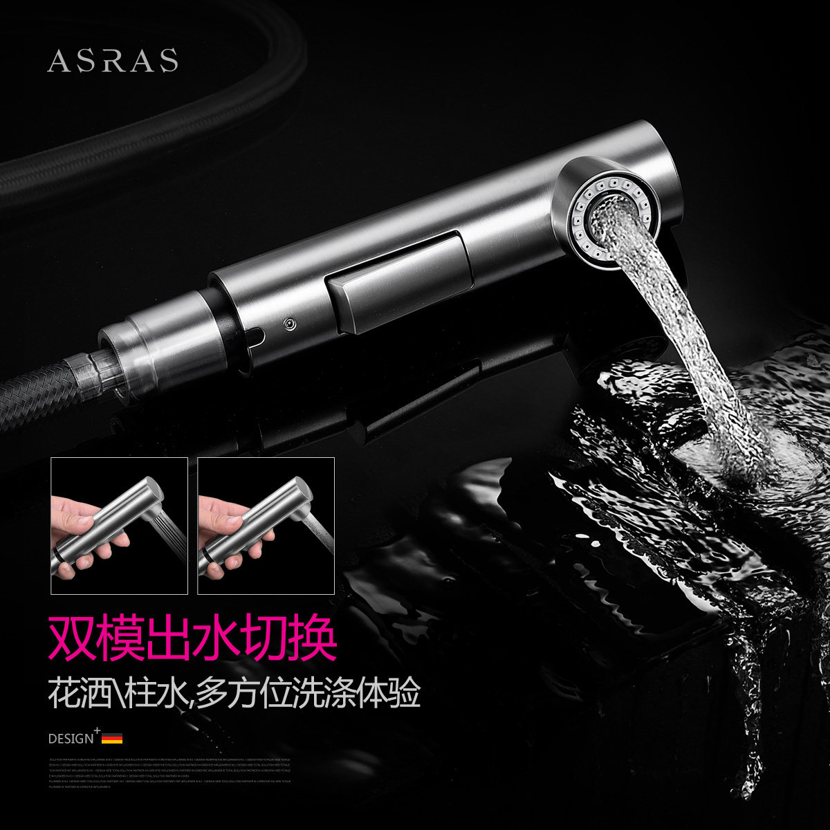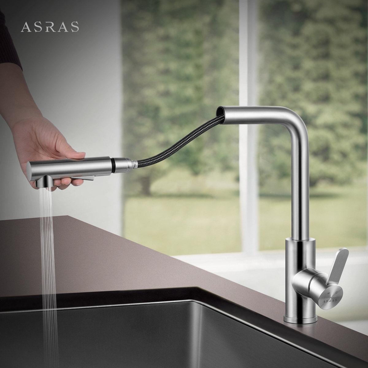 ARAS Asus kitchen washing basin stainless steel pull-out cold and hot tap telescopic stretch shower head