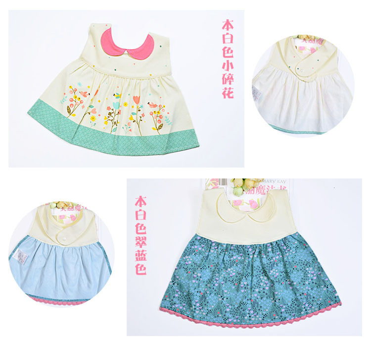 Female Baby Pure Cotton Saliva Towel Dresses Apron For Dinner Bib Baby Adjustable Waterproof Spat Scarf Bib Large Number No Sleeve Hood Clothes