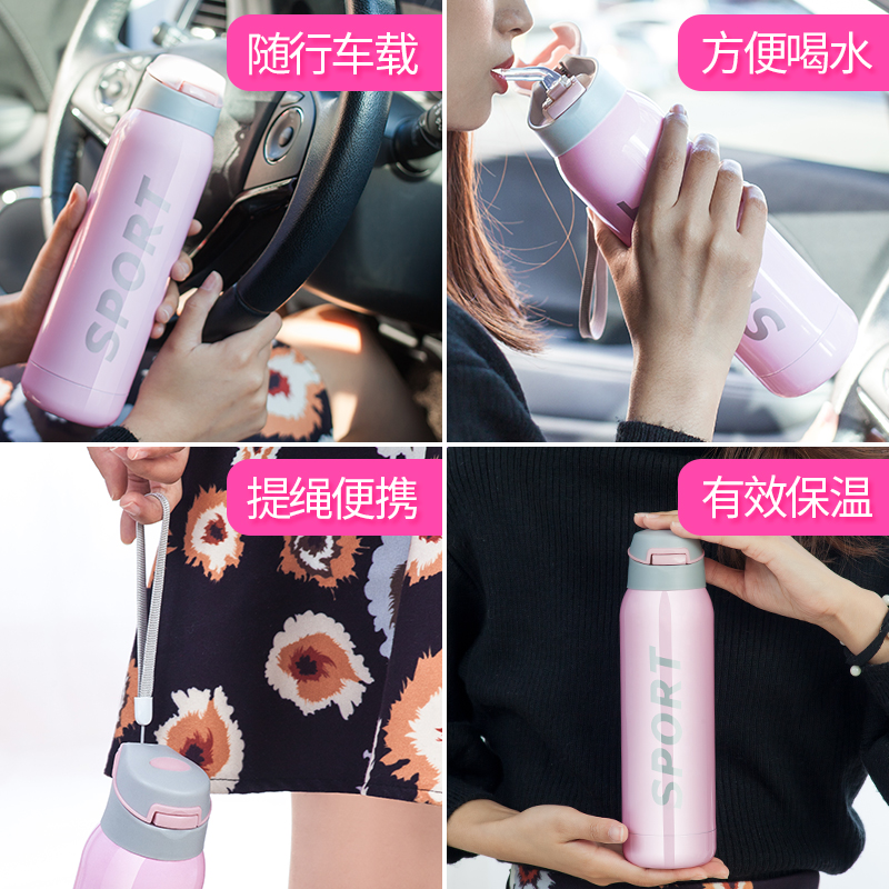 Thermos cup Women's cup with straw Adult student Children's net Red personality creative trend Portable literary and artistic water cup