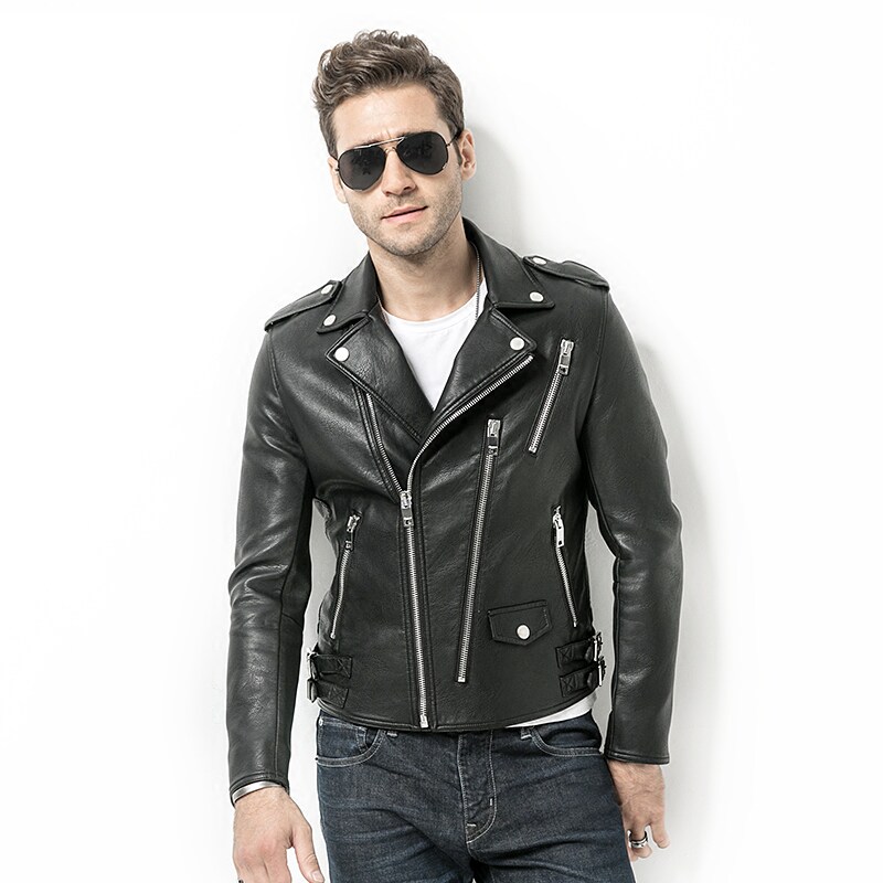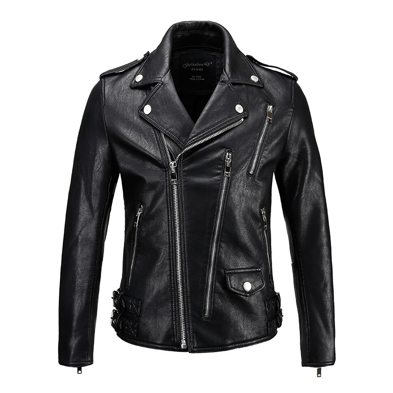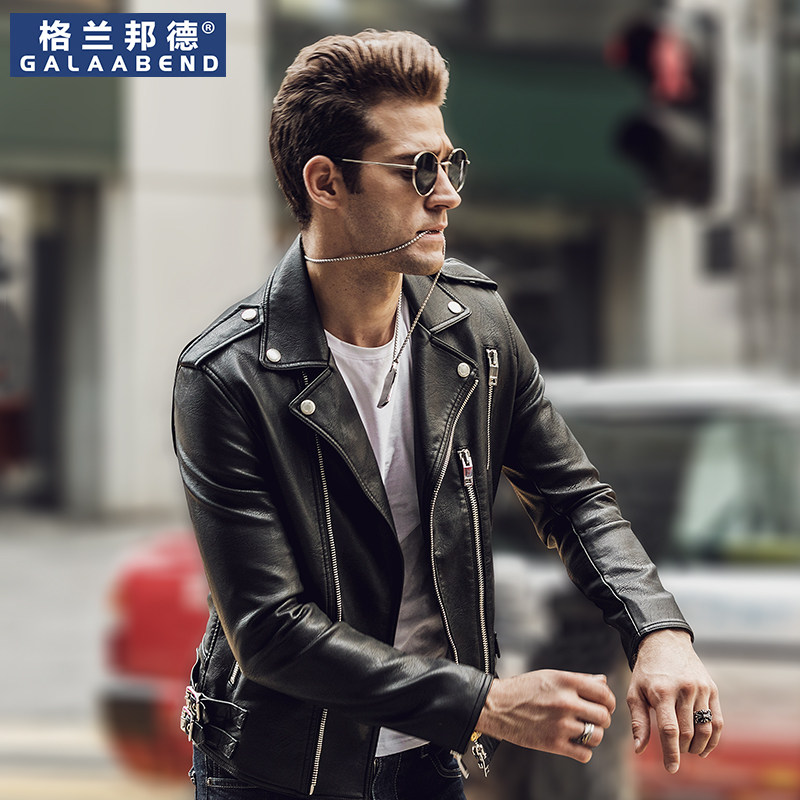 Motorcycle leather men's fashion brand European and American leather jacket men's motorcycle clothing 2021 new handsome early spring coat