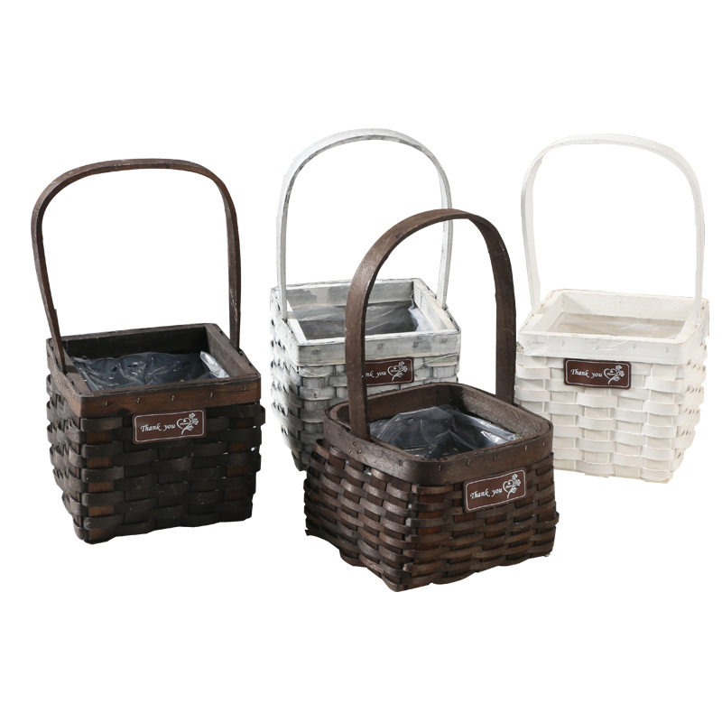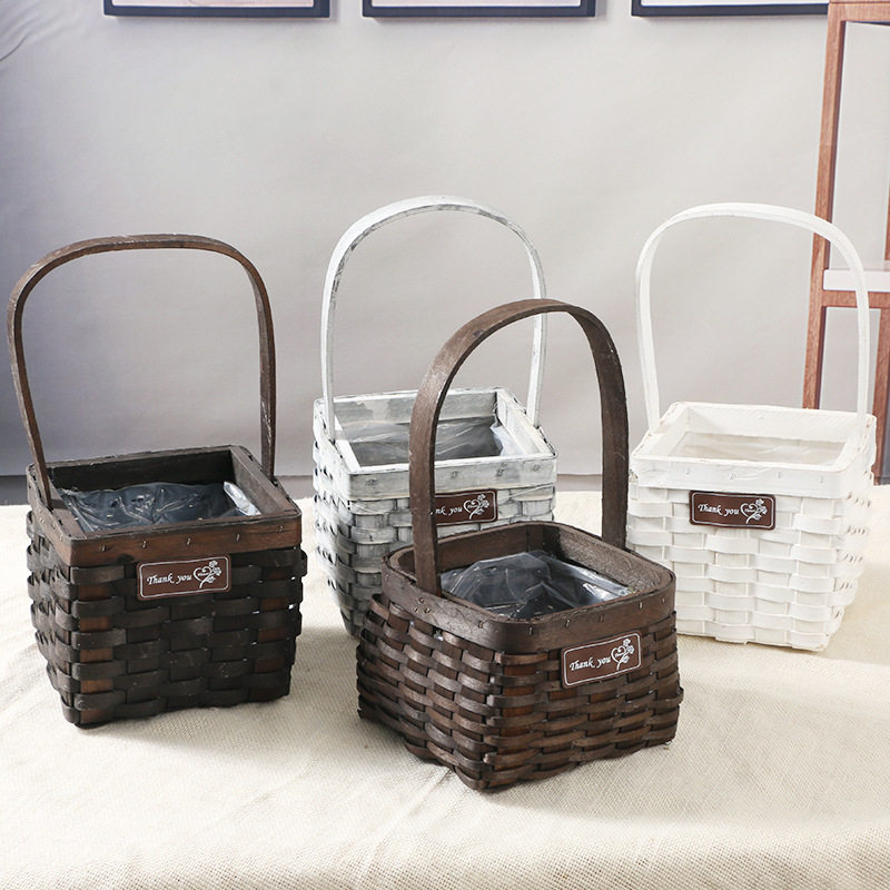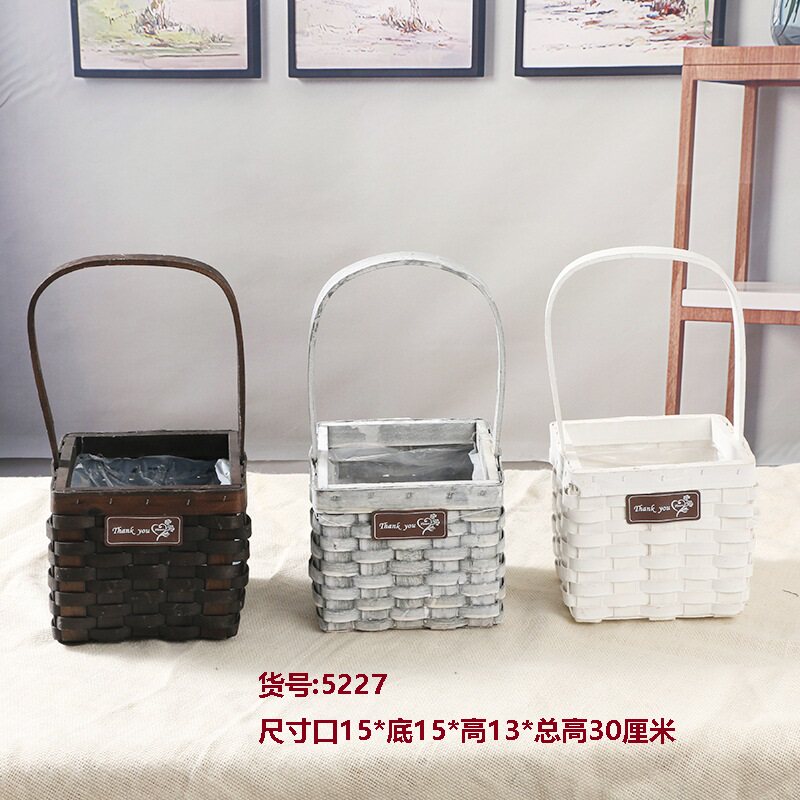 Factory direct sales of three deep coffee pastoral willow weaving rattan straw weaving original creative wood chip flower basket succulent flower arrangement