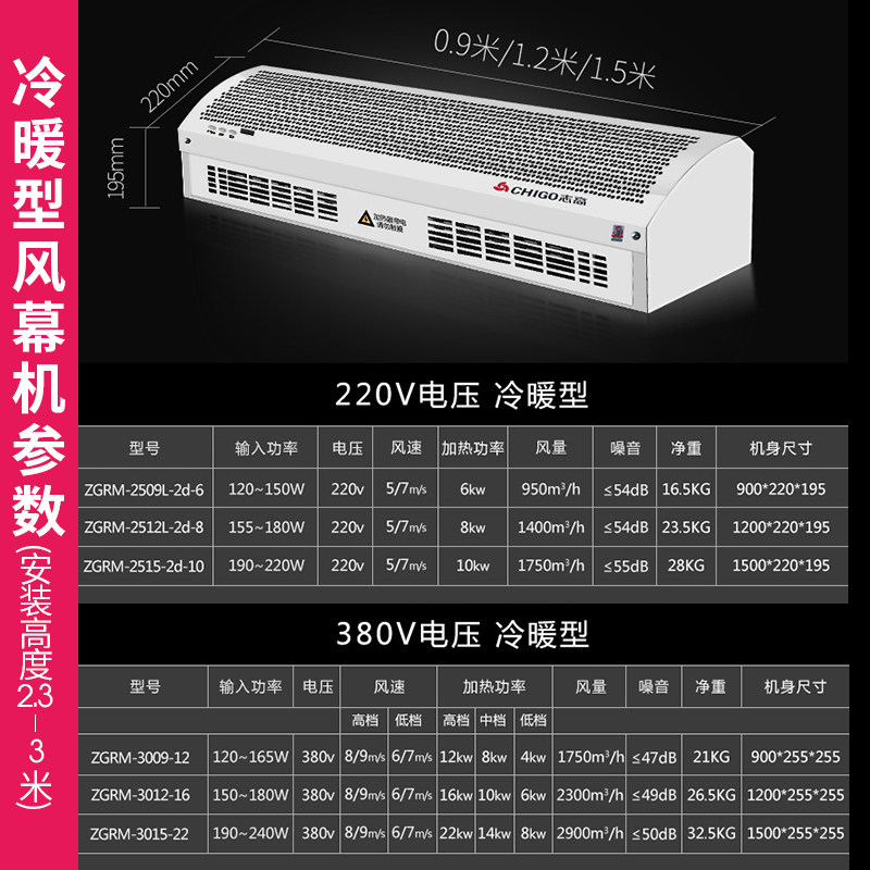 220V-0 9 m warm air curtain machine 220V-1 2 m warm air curtain machine 220V-1 5 m warm air curtain machine 380V-0 9 m warm air curtain machine