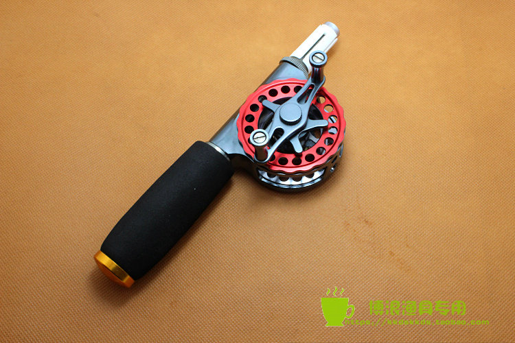 The direction of the handle of the fishing wheel: