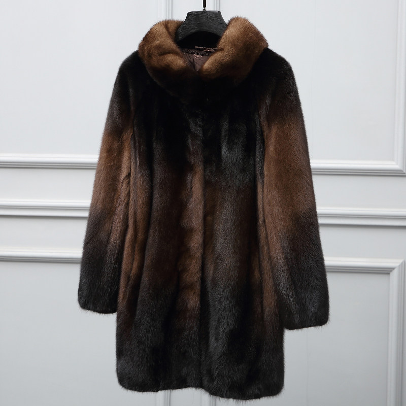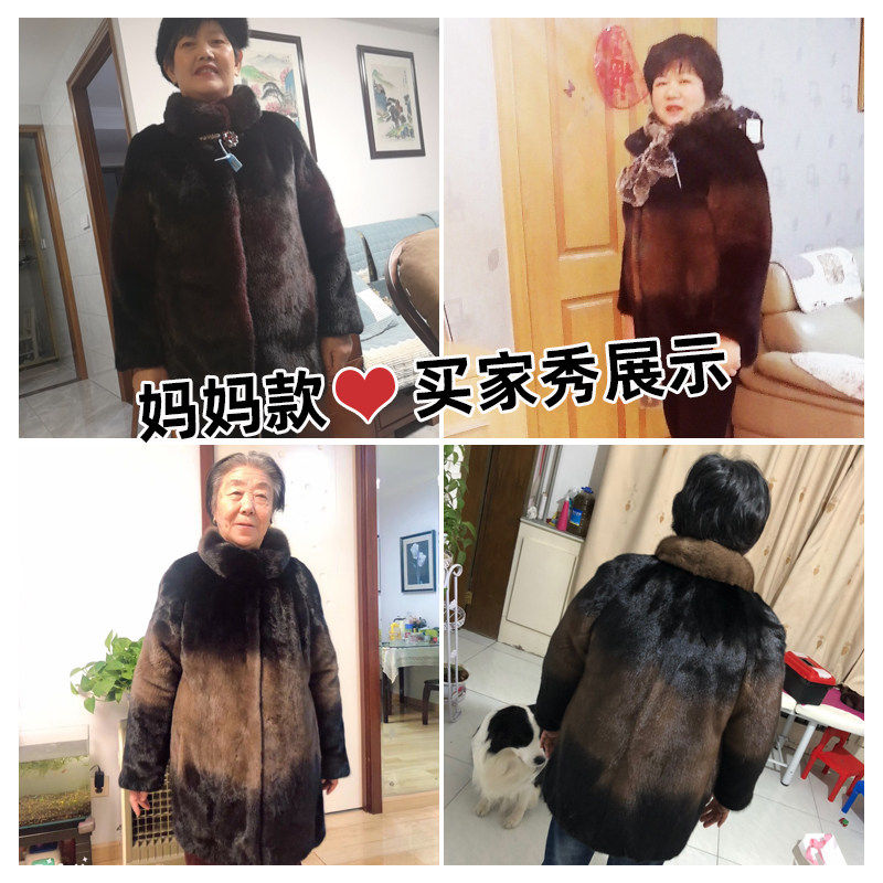 Imported mink coat ladies whole mink medium and long version of mink fur mother dress middle-aged and old dyed fur coat