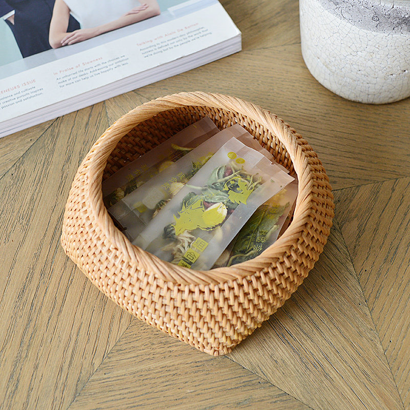 Natural Vietnam Indonesia hand woven rattan woven straw woven tea snack small storage basket frame basket storage box