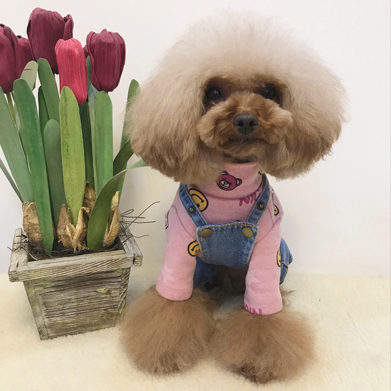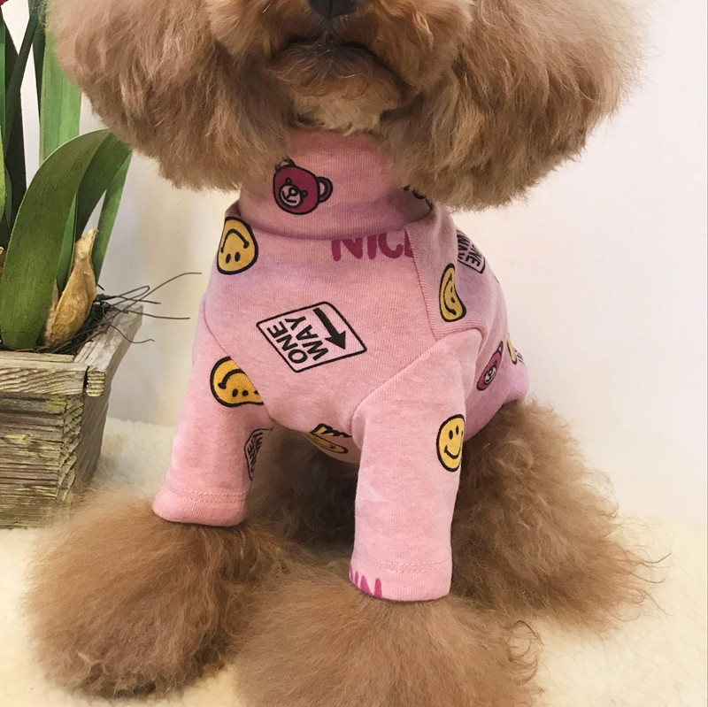 Spring and autumn bottoming T-shirt all-match embroidered high-neck ribbed long-sleeved dog bottoming with Teddy puppy clothes