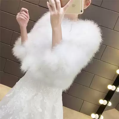 New Bride wedding dress woolen shawl ostrich fur coat winter long sleeve real hair thick warm Korean winter