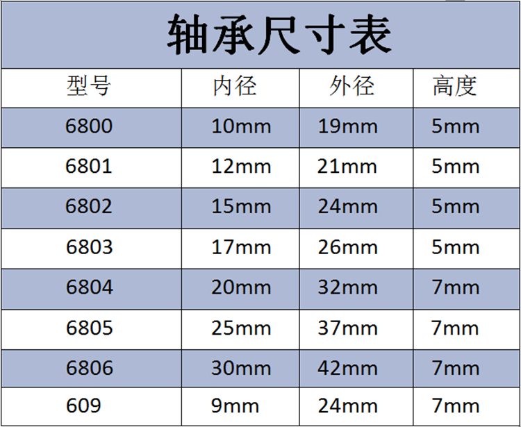 Carbon steel 6800ZZ inner 10 outer 19 high 5 carbon steel 6801ZZ inner 12 outer 21 high 5 carbon steel 6802ZZ inner 15 outer 24 high 5 carbon steel 6803ZZ inner 17 outer