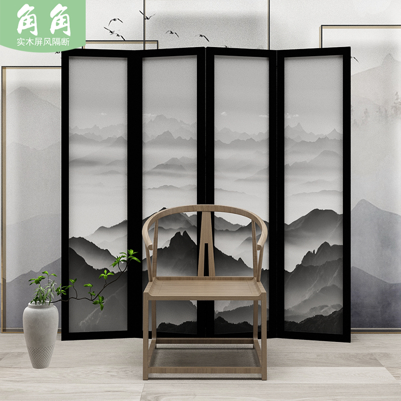 Modern new Chinese style solid wood entrance partition Living room Office hotel fashion double-sided Chinese style landscape small screen