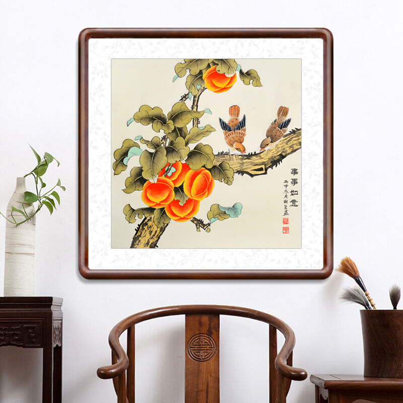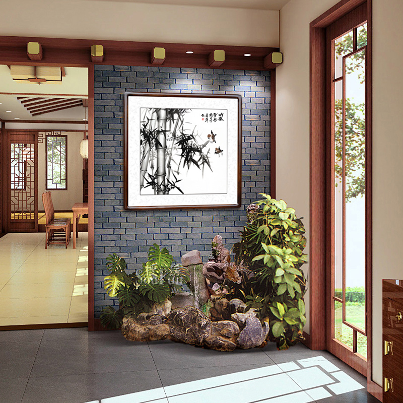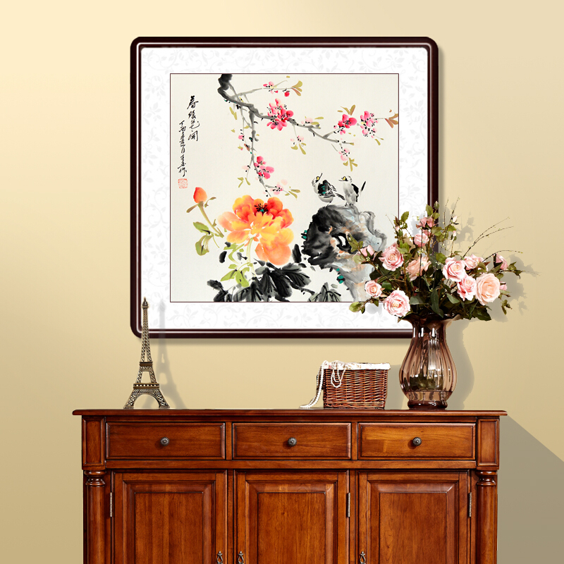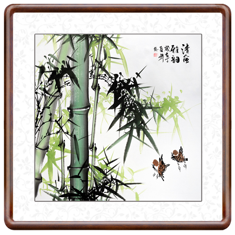 Bamboo decoration painting Peony flower painting Living room Dining Room Dining Hall Hung Painting Country Painting Triptych Painting Genguan Corridor Gangway Bucket Square Calligraphy