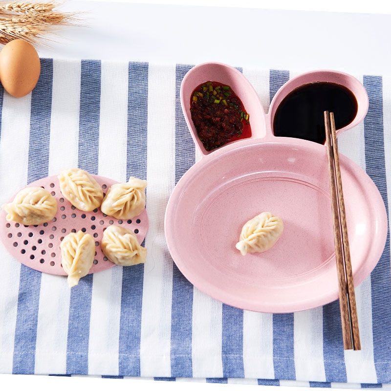 Wheat Straw With Vinegar Dish Water Dumplings Kitchen Cartoon Rabbit Bilayer Drain Pan Water Dumplings Creative Household Dinner Plate