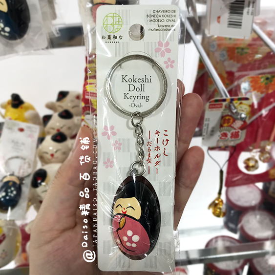 Japan DAISO Japanese style traditional cute wooden doll keychain mobile phone hanging chain pendant