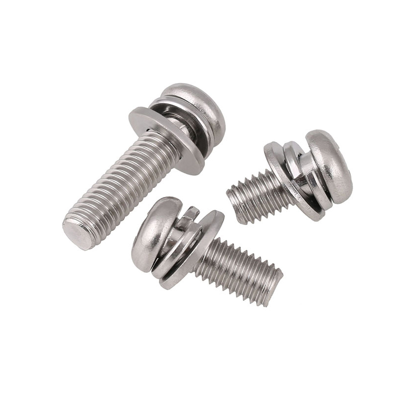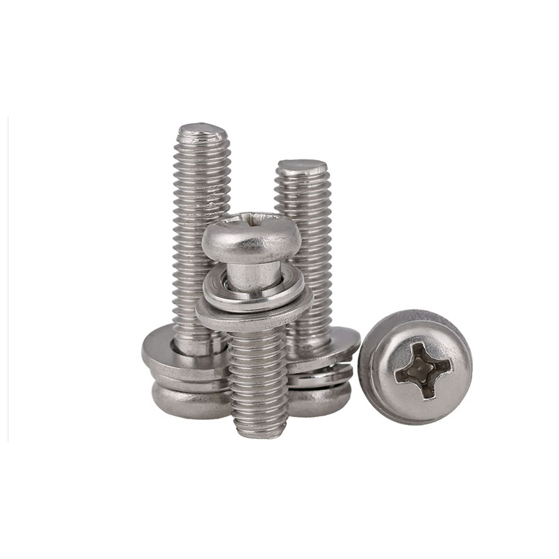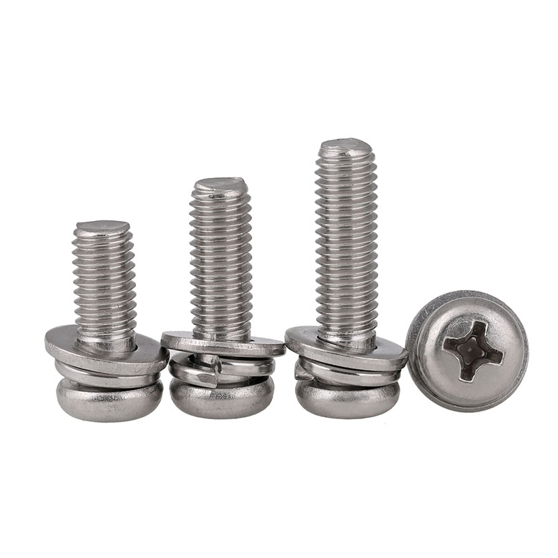 M4 304 stainless steel GB9074 8 small disc head cross flat bomb cushion combined machine screw round head tricombined screw