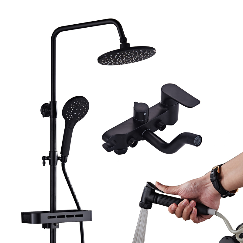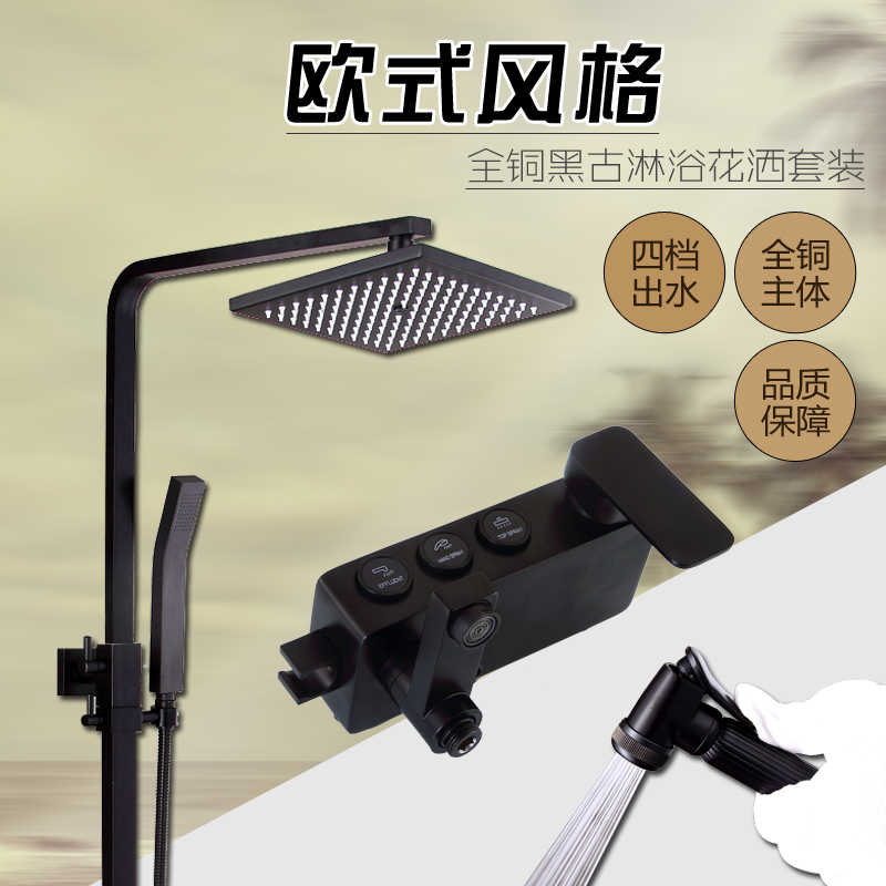 Black all copper shower kit bath household hot and cold mixing valve with spray gun spray head bathroom faucet