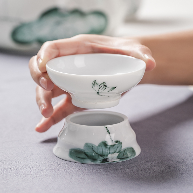 White porcelain hand-painted tea filter ceramic tea leak kung fu tea accessories tea Chinese hipster lotus style