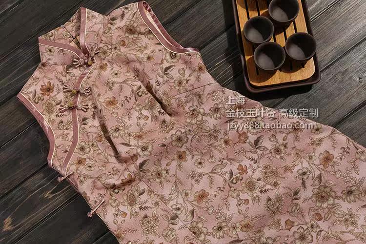 Advanced custom ancient cloth halo sandalwood sketch small flower handmade claw buckle short cheongsam daily annual meeting can be padded jacket cheongsam