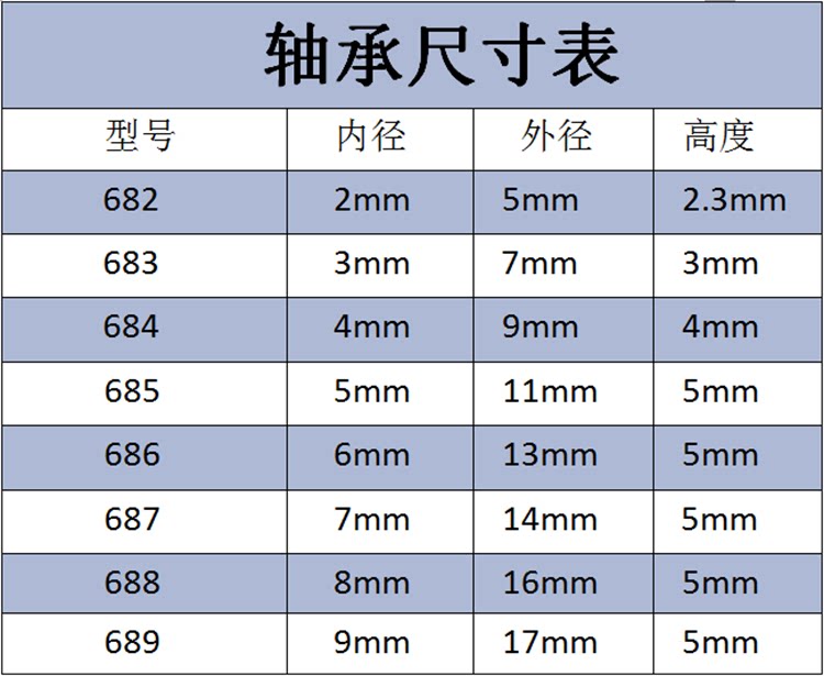 High-speed motor 681ZZ inner 1 outer 3 high 1 high-speed motor 682ZZ inner 2 outer 5 high 2 5 high-speed motor 683ZZ inner 3 outer 7 high 3 high-speed motor 684ZZ inner 4 outer 9