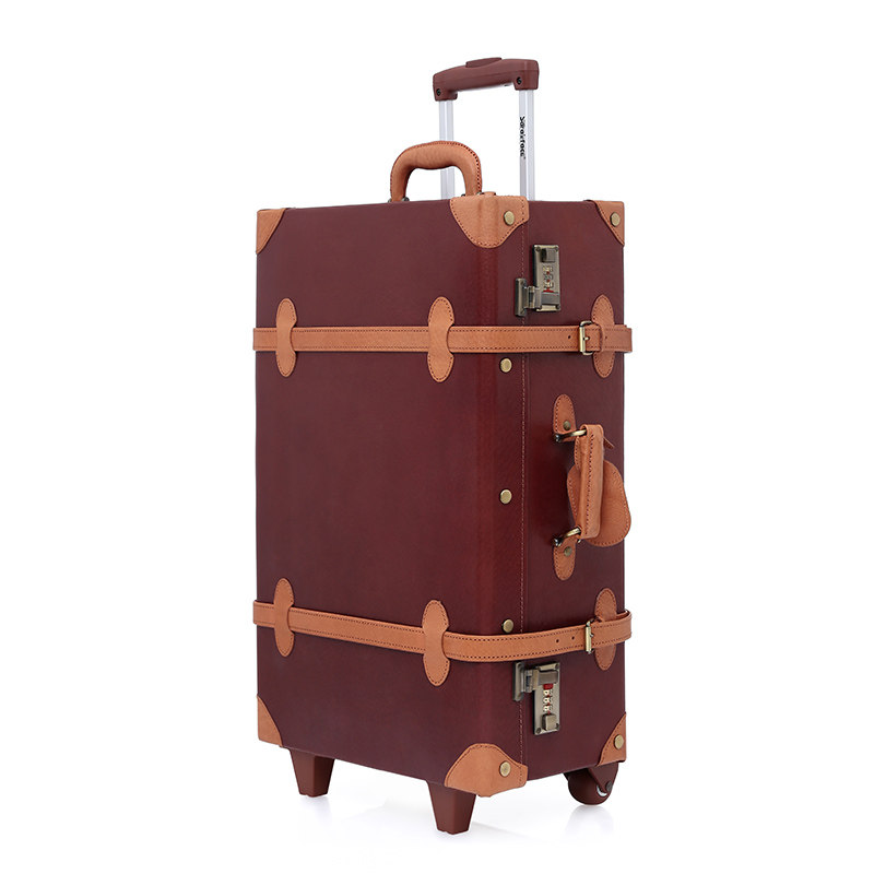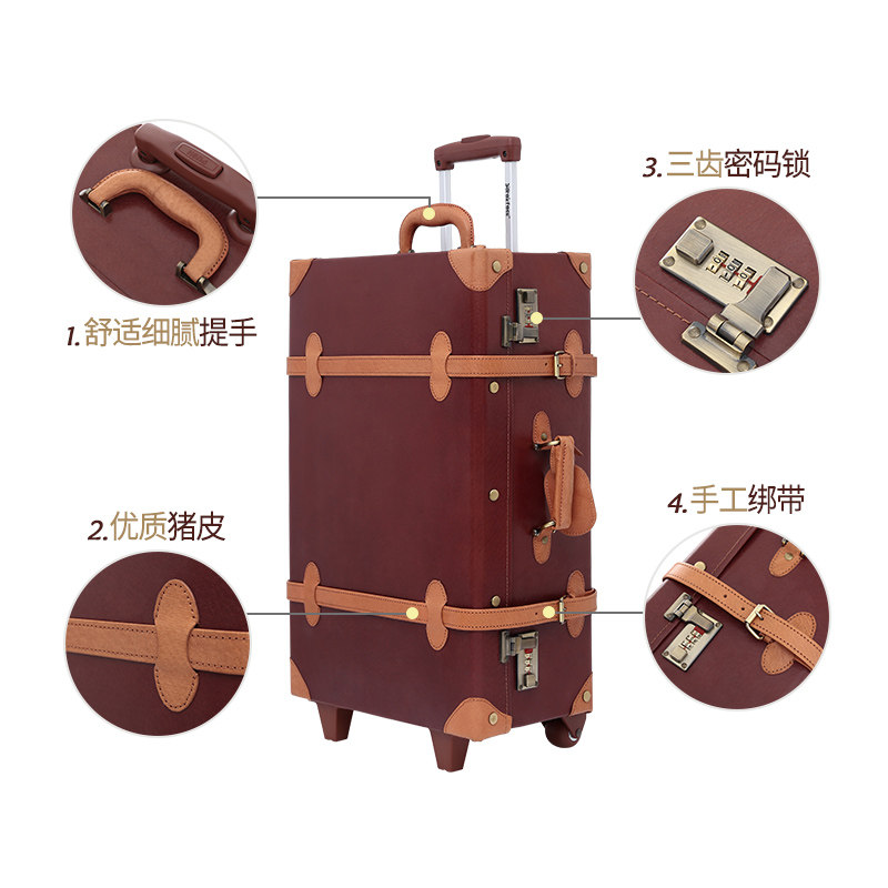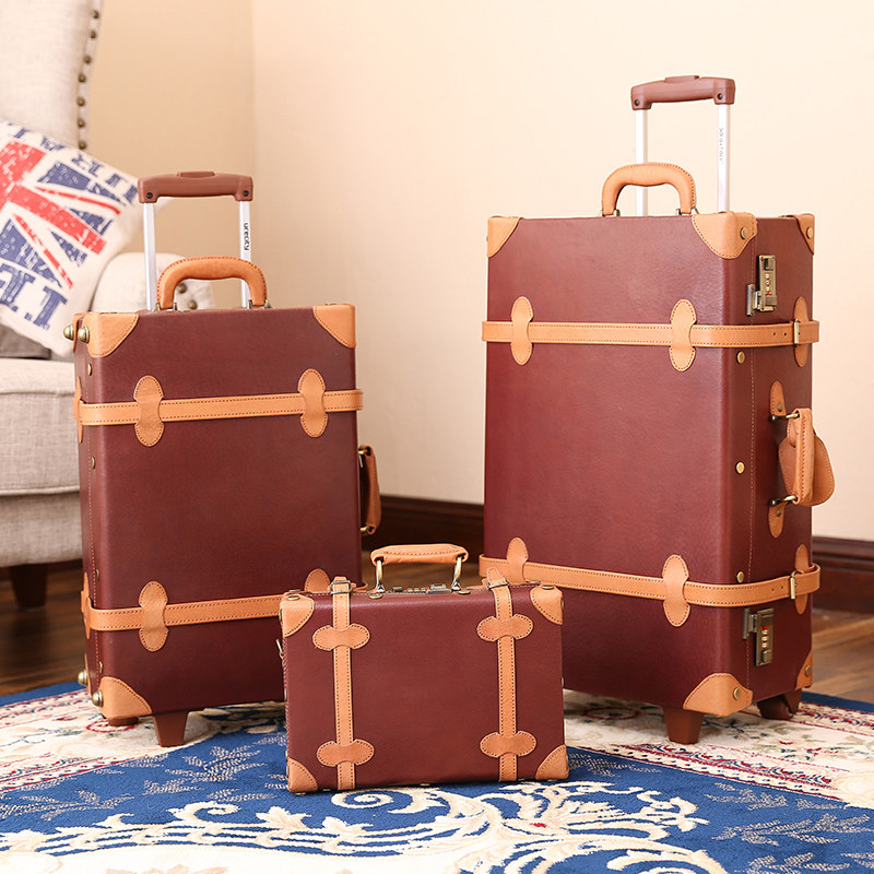 urrecity old vintage retro pull-lever box genuine leather suitcase props leather case props 20 inch boarding suitcase