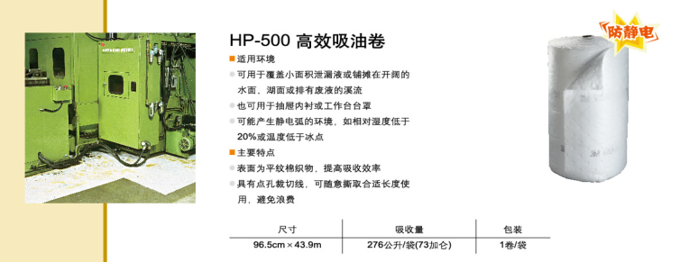 3M HP-500 Rolls-Shaped Suction Oil Cotton Efficient Suction Oil Rolls Pier Lakes Oil Stain 1 Vol.