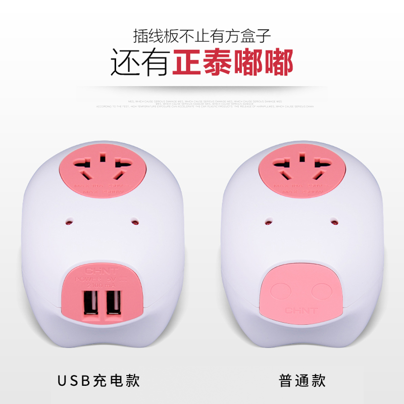 Chint electrician lucky pig auspicious gift double USB row plug-in wiring board drag line board desktop charging switch socket
