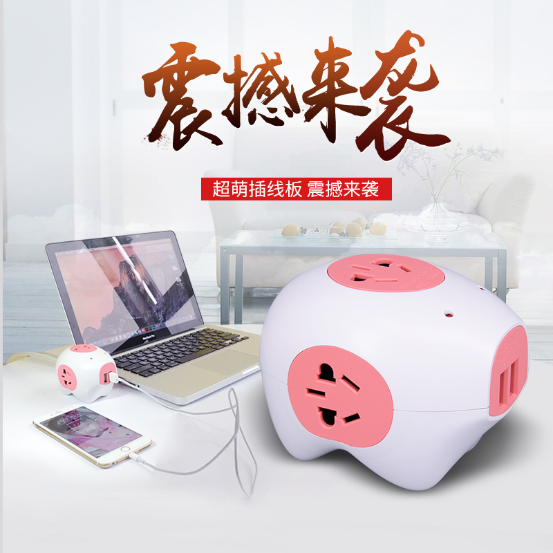 Lucky pig double USB 2 1A rechargeable model 1.5 meters long Lucky pig three-position five-hole row plug 1.5 meters