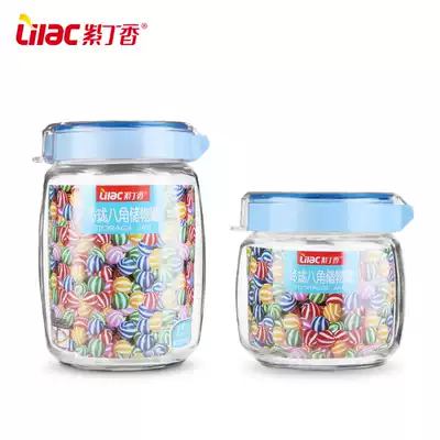 Lilac Linglong octagonal jar lead-free glass sealed jar large moisture-proof storage tank dried fruit Miscellaneous grain bottle milk powder jar
