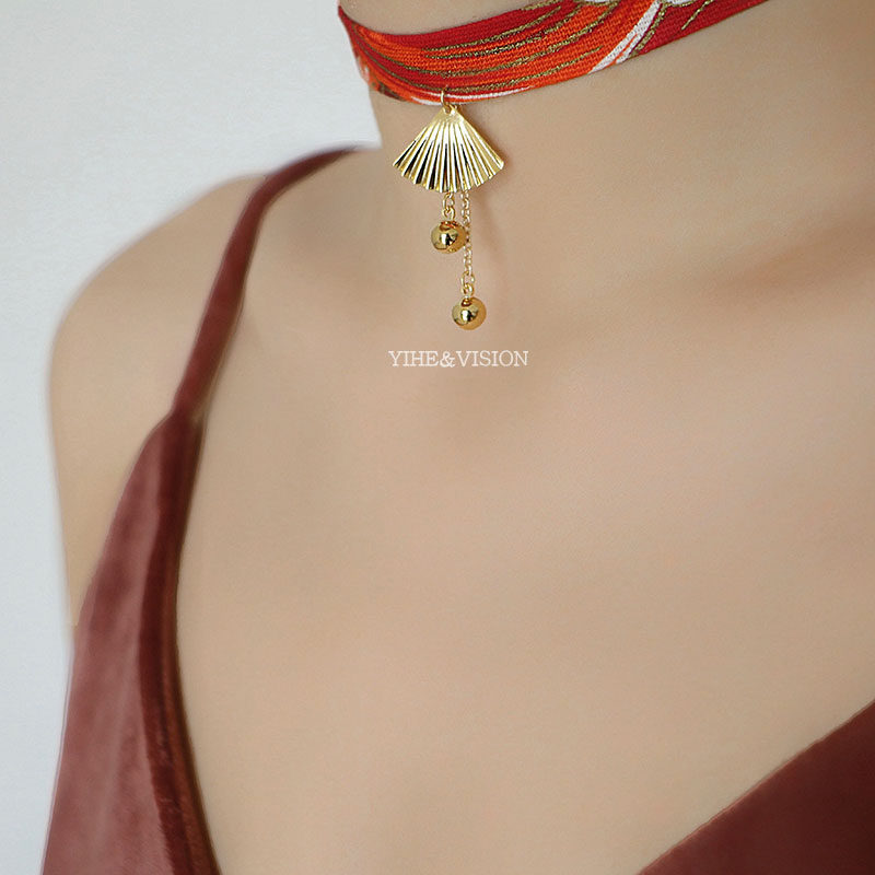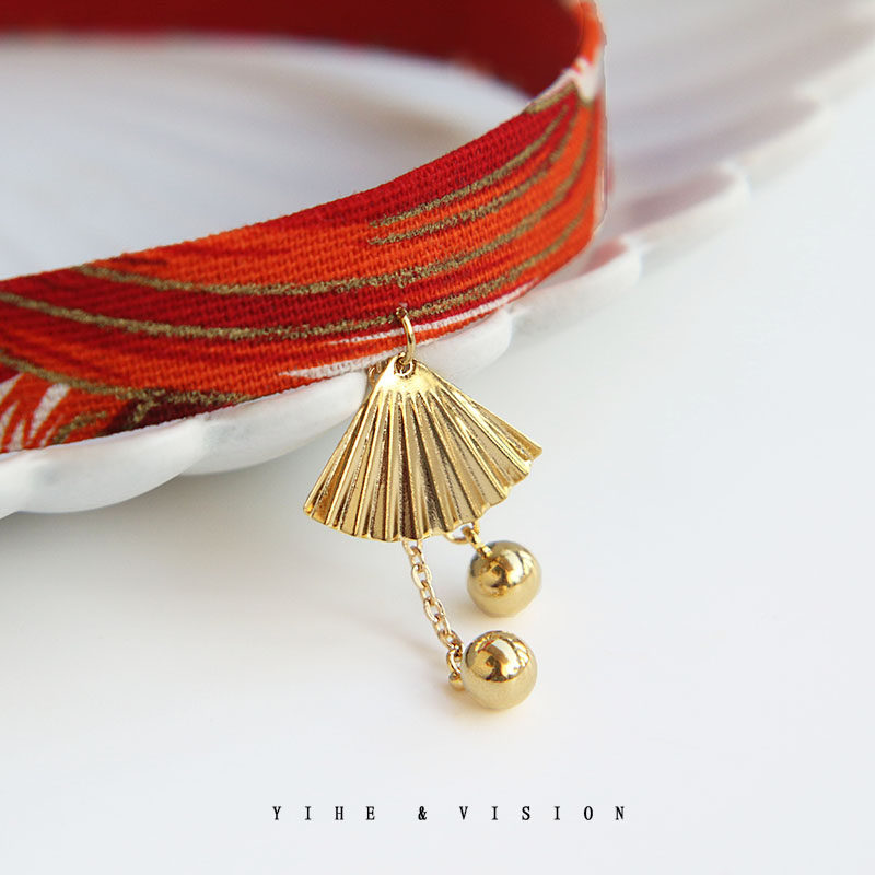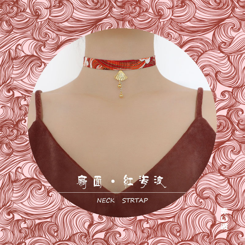 YIHE original design Japanese style Japanese style ukiyo-e fan face red ocean wave choker neckband collar
