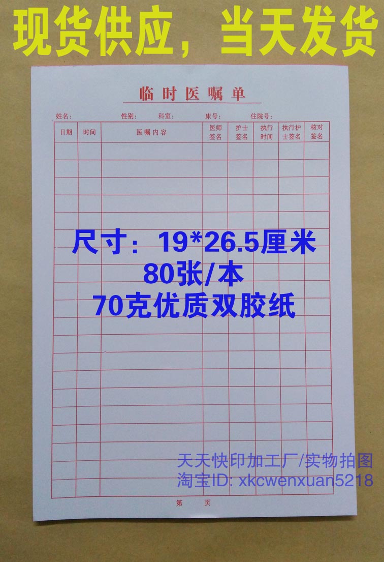 Spot long-term medical order form Temporary medical order form 70 grams of double adhesive paper size 19*26 5 cm 80 sheets