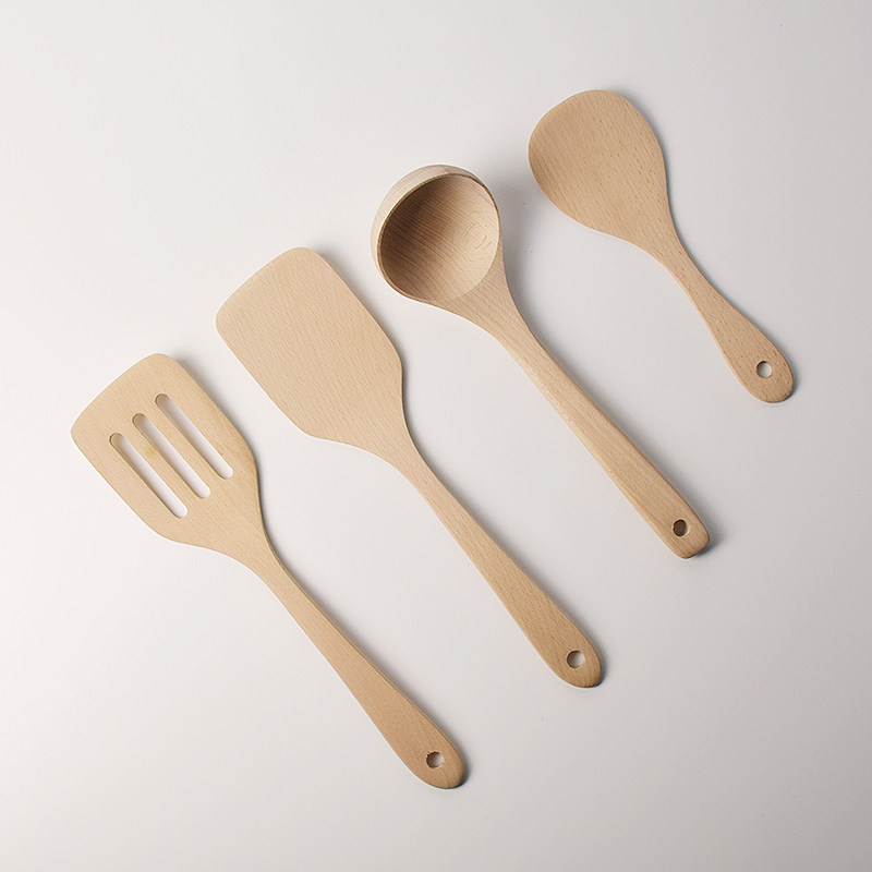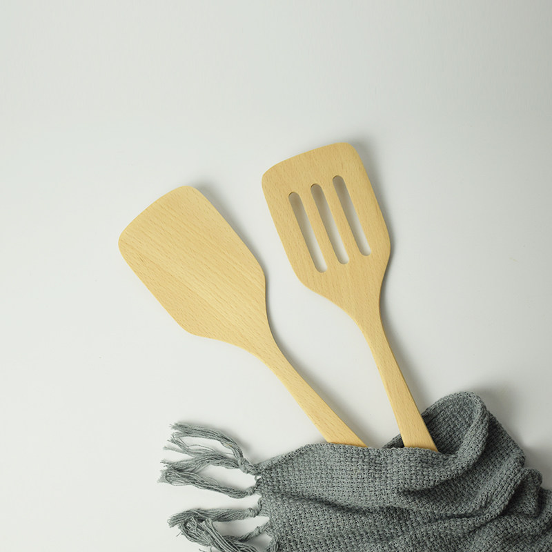 Unpainted beech non-stick pot wooden shovel spoon kitchen wooden spatula leaking shovel cooking shovel rice spoon spoon set