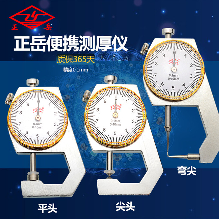 Zhengyue thickness gauge Thickness gauge Leather table thickness table 0-10mm 20mm flat tip curved tip thickness measurement
