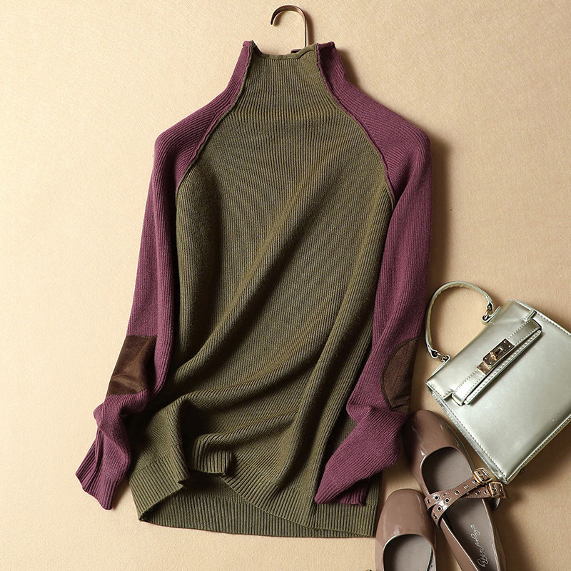 Half turtleneck sweater women's autumn and winter new Korean version loose pullover thickened short long-sleeved knitted bottoming shirt women