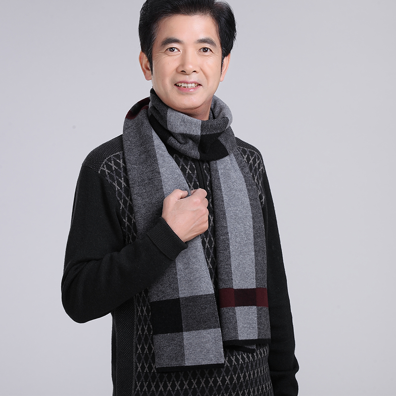 Middle-aged and elderly scarf men's winter old grandpa middle-aged dad Korean version wild spring and autumn and winter warm collar