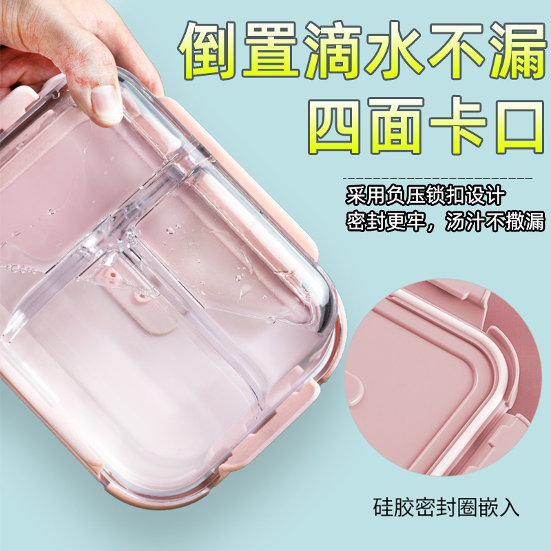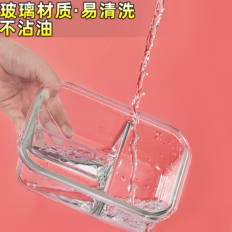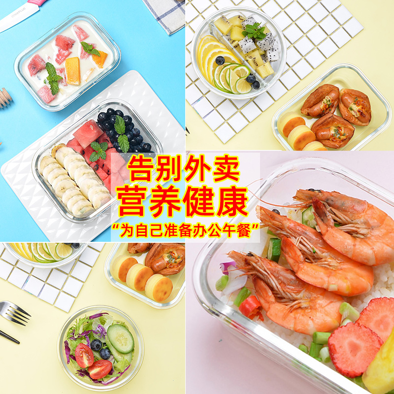 Office worker glass lunch box microwave oven special crisper set bento with lid rectangular round bowl lunch box home - Taobao