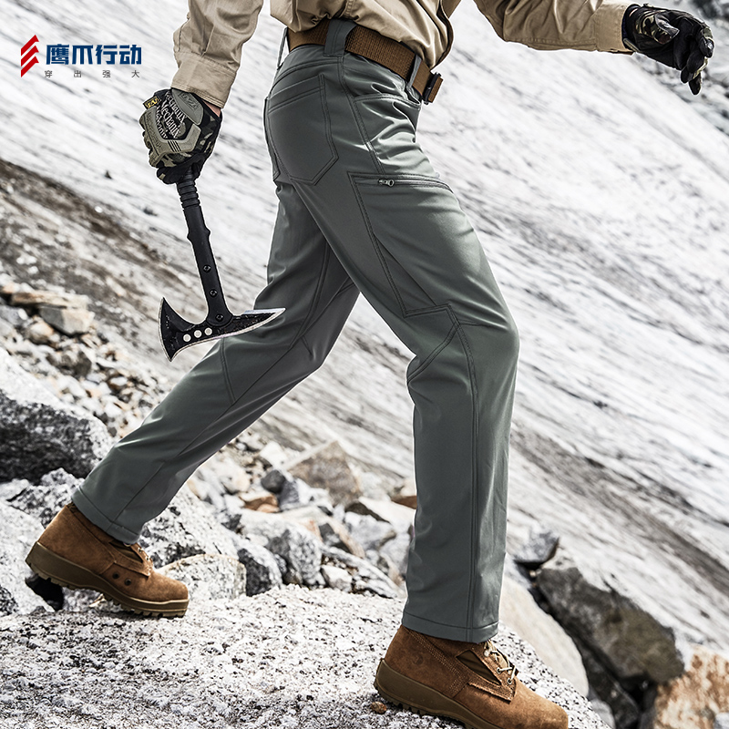 Eagle claw action soft shell pants men's winter windproof waterproof outdoor storm pants hiking pants plus fleece thick tactical pants