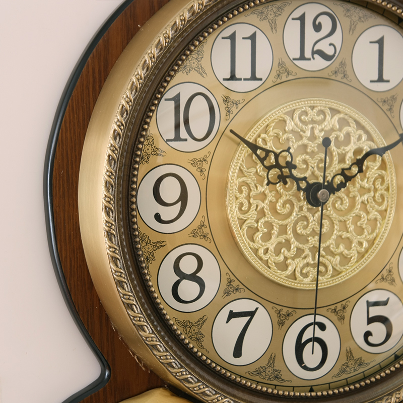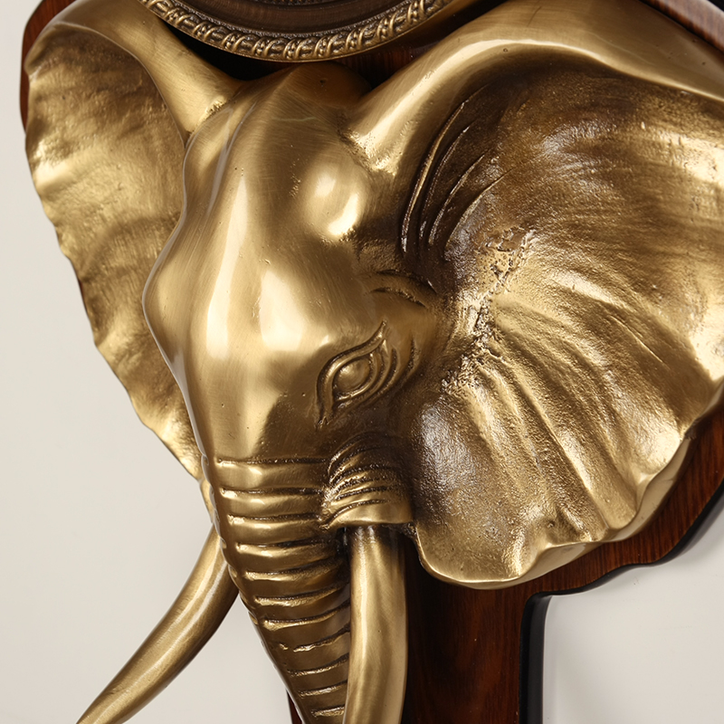 TQJ European style pure copper wall-mounted bell living room wood decoration hanging table creative auspicious elephant muted quartz clock