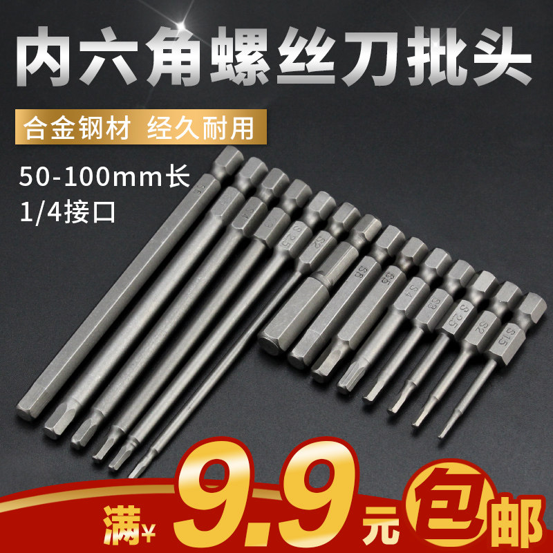 Inner hexagon electric screw screwdriver head screwdriver head pneumatic screwdriver head pneumatic screwdriver nozzle lengthened screw screwdriver head suit