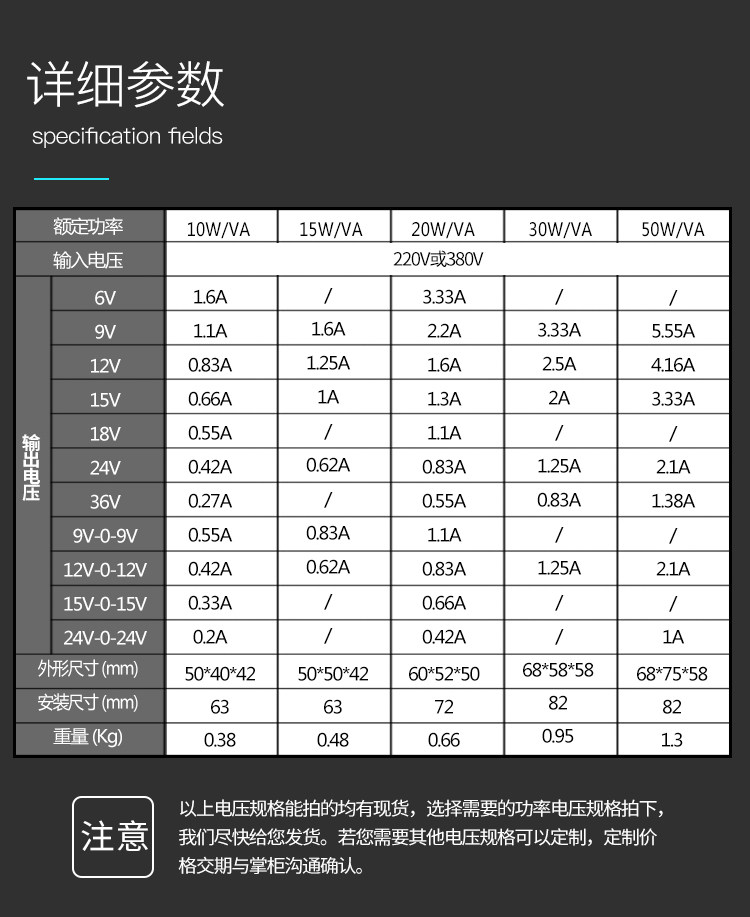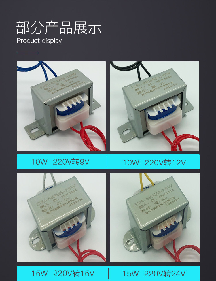 10W20W30W50W380V220V to 6V9V12V15V18V24V single and double AC power transformer type E