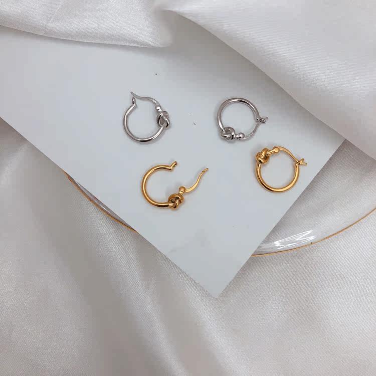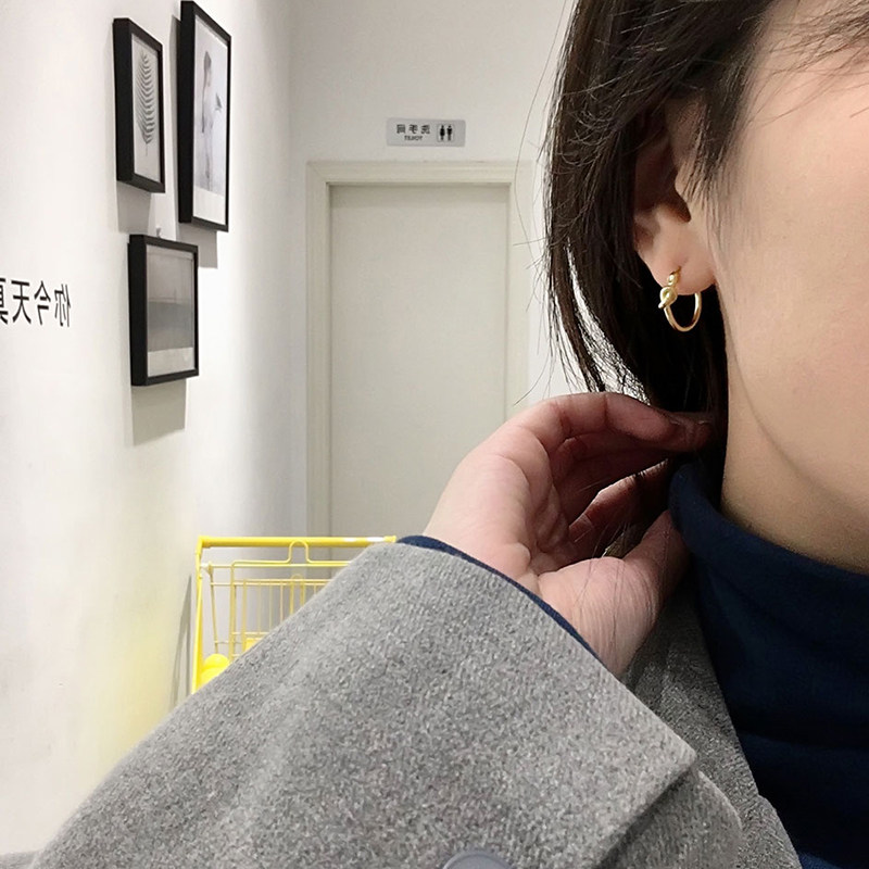 Personality 925 pure silver yellow gold earrings simple handsome gas rope knot ear ring No. 100 lap ear button male and female boomers