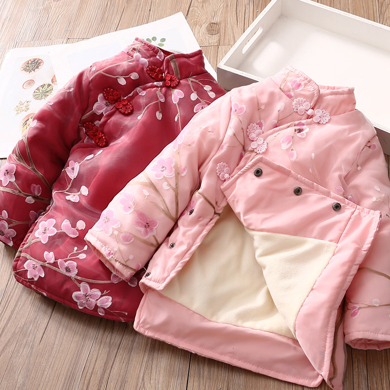 Baby Plum Blossoms Dress 2021 Winter Dress New Girl Child Clothing Thickened Cotton Skirt qz-4478