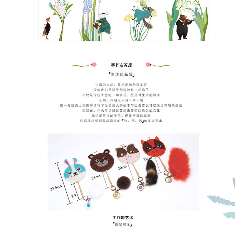 Original innovative cute cartoon shape embroidery fan accessories fan fan gift gift