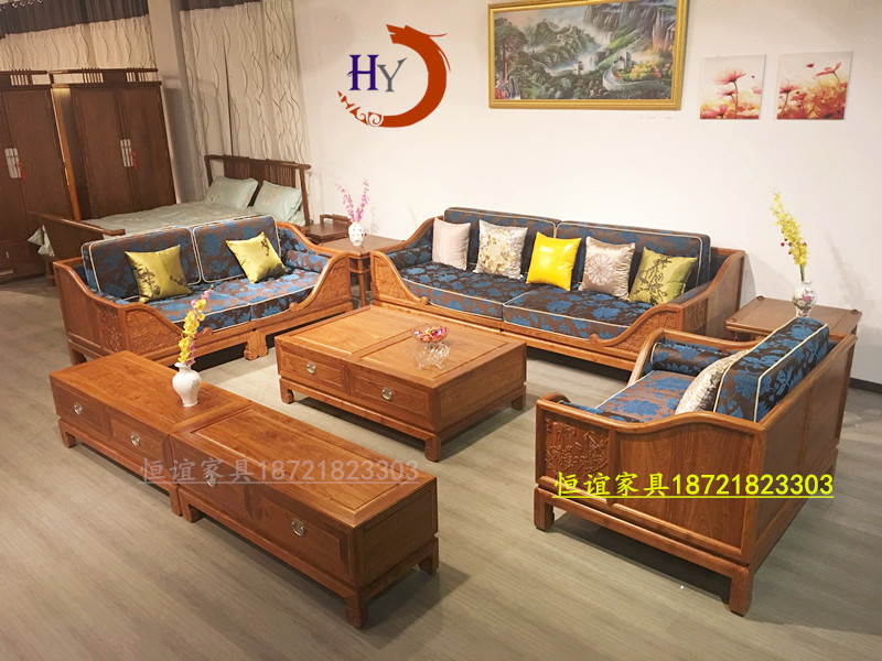 Red Wood Hedgehog Purple Sandalwood Sofa Composition Solid Wood Kyocera Supear Furniture New Chinese Living Room Sofa Combined Flowers Pear Wood