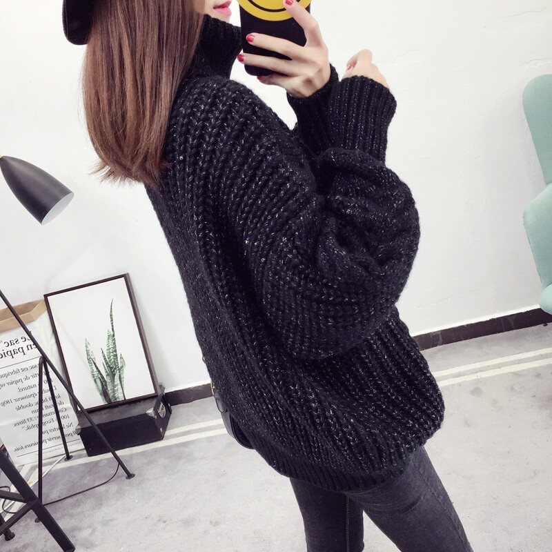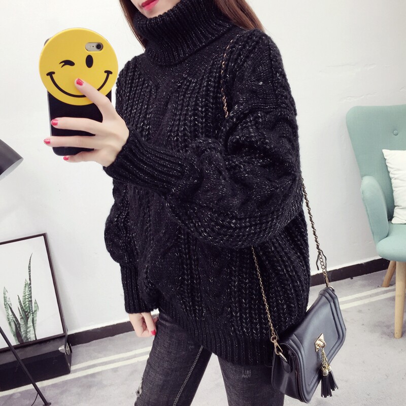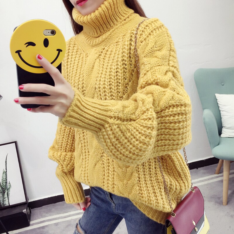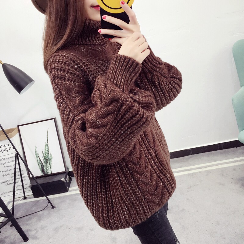 Thick Thread Hemp Flowers High Collar Sweater Woman Loose Outside Wearing 2022 New autumn and winter sets Lazy Wind-Knit Cardiovert Blouse