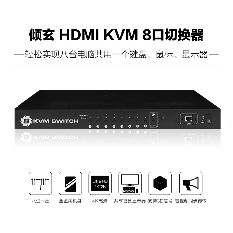 KVM switch 8-port HDMI8-in-1-out automatic with remote control USB mouse keyboard Host display sharer